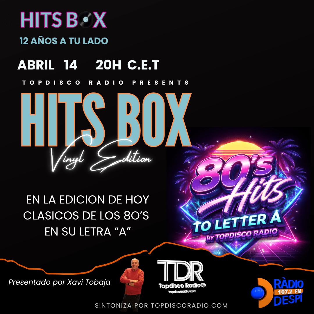 Una edición muy especial en el programa de hoy, todos los artistas que están en la lista son grandes temas de los años 80 cuyos nombres empiezan por la letra A , grandes temas como el de Alaska y Dinarama, Alan Cook, Arcadia, entre otros, disfrutar de esta buena música durante 60 minutos , un espacio presentado por Xavi Tobaja.